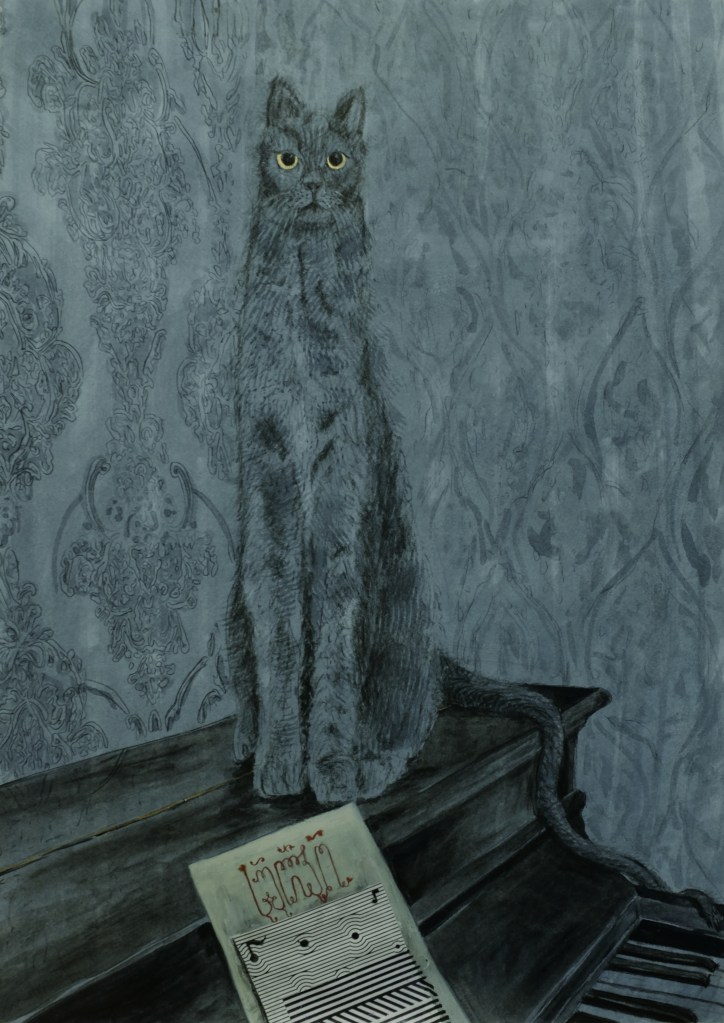 Growing up surrounded by Georgian icons and visual culture, I absorbed the colors, especially gold, which, to me, signifies divine light and resilience amid hardship. I choose a greyish-blue palette to reflect the muted, atmospheric environment I live in, while also cultivating a dreamlike, ephemeral quality. Much of my art is inspired by dreams, and these cool, subdued tones help dissolve boundaries, blur edges, and evoke the hazy, shifting feeling of the subconscious in order to make the images feel suspended, almost weightless, between waking and dreaming.